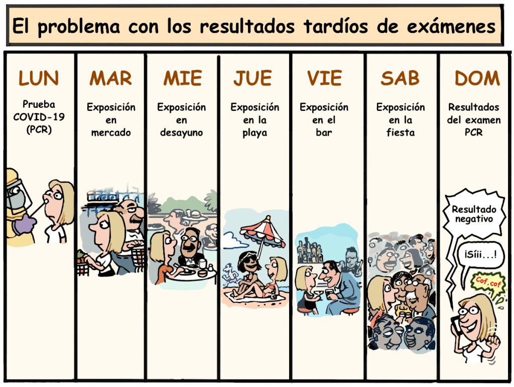 Las pruebas RT-PCR (reverse transcription polymerase chain reaction, transcripción inversa de reacción en cadena de la polimerasa) para detectar el ARN del coronavirus 2 (SARS-CoV-2) del síndrome agudo respiratorio severo (SARS) son el estándar de oro operativo para detectar la enfermedad COVID-19 en la práctica clínica.