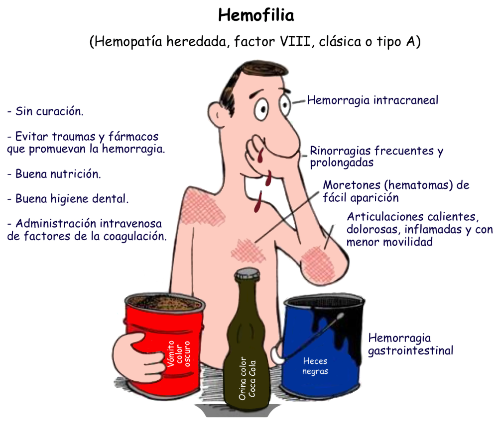 La hemofilia es una tendencia hemorrágica que afecta casi exclusivamente a los hombres (enfermedad recesiva relacionada con cromosoma X). En el 85% de los casos es por deficiencia de factor VIII (factor antihemofílico A), llamándose hemofilia A o hemofilia clásica. En aproximadamente el 15% de los casos hay deficiencia de factor IX (factor antihemofílico B, Christmas), hemofilia B. La incidencia de hemofilia A es 1:5,000 o 10,000 varones, clasificándose como leve, moderada o grave.